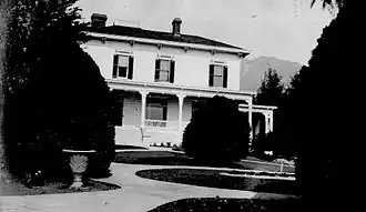 The home was built in 1882 for Capt. Frederick Woodbury, and his wife, Martha. The home was the headquarters for a ranch that included a two-story bunkhouse for the ranch hands. Citrus groves and vineyards were planted on the land.[2] Woodbury planted the deodar cedars that line the contemporary Santa Rosa Ave., also known as Christmas Tree Lane, another National Register site.[3] In 1892, Woodbury sold the home to a man named Walker, who in turn sold it to Hampton L. Story in 1894. During the decades following Story's death, the home became a coffee shop, sheriff's station, a fire engine house, office building and a tea house.[2] It is currently used as a filming location.