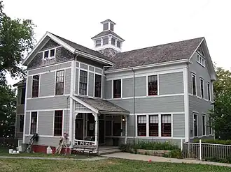 The Woods Hole School is a historic school building at 24 School Street in Woods Hole, Massachusetts, United States within the town of Falmouth, Massachusetts. The school was listed on the National Register of Historic Places in 1982.[1] It is a two-story wood-frame structure, with a gable roof capped by a two-stage cupola with belfry. A gabled two-story section projects to the front, with a shed-roof porch sheltering the entry to its side. It has trim bands extending around the building at the tops and bottoms of its windows. The building, the second school built on the site, was built as a two-room structure in 1870, and enlarged to four classrooms in 1885. The architect for the expansion was Samuel D. Kelley and the contractor was Mead, Mason & Company of Concord, New Hampshire.[2]