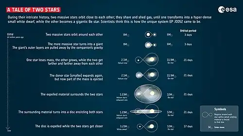 ESA infographic of BeWD EP J0052 formation, observed by the Einstein Probe[16]
