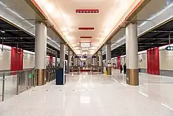 Xinshougang (Shougang Park) station[note 1][1] (Chinese: 新首钢站; pinyin: Xīnshǒugāng Zhàn) is a subway station on Line 11 of the Beijing Subway.[2] The station opened on December 31, 2021.