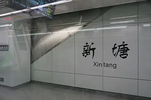 Xintang (Chinese: 新塘) is a metro station on Line 4 of the Hangzhou Metro. It is located in the Shangcheng District of Hangzhou.[1] This station was opened on June 28, 2015.