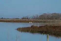 In the 1980s, the population of black swans (cygnus atratus) in Yarrs Flat ranged between 300 and 1000 individuals.[12] In 2021, Yarrs Flat is had the third largest nesting colony of black swans in Lake Ellesmere / Te Waihoram,[18] with 130 nests recorded.[19] However, due to flooding and shrub-like vegetation, it is not as hospital to C. atratus as the nesting sites on Kaitorete Spit or in Ataahua[19][12] and early nests are particularly prone to being damaged or destroyed.[12]