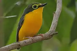 The yellow-bellied wattle-eye (Platysteira concreta) is a species of bird in the family Platysteiridae. It is sparsely distributed across the African tropical rainforest.