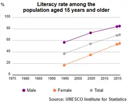 - ^ "National adult literacy rates (15+), youth literacy rates (15–24) and elderly literacy rates (65+)". UNESCO Institute for Statistics. Archived from the original on 29 October 2013. Retrieved 13 December 2013.