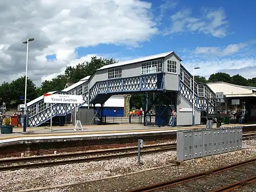 Yeovil Junction is the busier, but less central, of two railway stations serving the town of Yeovil in Somerset, England; the other is Yeovil Pen Mill. The station is sited 2 miles (3.2 km) outside the town, in the village of Stoford; although Yeovil is in Somerset, the station was in Dorset until 1991.[1] It is located 122 miles 48 chains (197.3 km) down the line from London Waterloo.