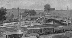 Work started in 1907 to enlarge the station and was completed in 1909. The new northern platform was 590 feet (180 m) long with a track on either side; the northern track was for the Yeovil Town trains and the southern side was for main line services to London. The 510-foot (160 m) southern platform also had two tracks, the northern face for westbound trains and the opposite side was a goods siding. Two through tracks also passed between the platforms for non-stop trains. A footbridge at the west end connected the two platforms and extended over the branch track to the station forecourt. A second footbridge was erected at the east end of the station but was dismantled in 1920 and moved up the line to Overton railway station. The goods yard was also extended in 1908 and new sidings were laid near the GWR exchange siding. The cost of the work was in excess of £47,000.[2]