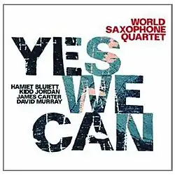 Yes We Can is a live album by the jazz group the World Saxophone Quartet. It features Hamiet Bluiett on baritone saxophone, James Carter on soprano and tenor saxophones, Kidd Jordan on alto saxophone, and David Murray on tenor saxophone and bass clarinet. The album was recorded on March 28, 2009, at Kino Babylon in Berlin, and was released in 2010 by Jazzwerkstatt.[1]