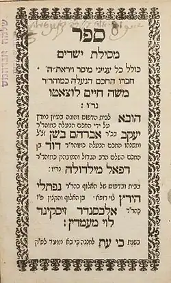 Haredi Yeshivot (with the exception of Brisker yeshivot) typically devote a seder to mussar (ethics and character development). The preeminent text studied is the Mesillat Yesharim ("Path of the Just") of Moshe Chaim Luzzatto. Other works of mussar literature studied include: