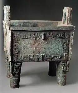 A large number of handicrafts and workshops have been discovered at Yinxu. Patterns on utensils and bronzeware include those resembling animal faces, whorl patterns, and the taotie pattern. Large-scale bronzeware excavated at the site like the Houmuwu ding were cast by an elaborate section-mold process.[22]