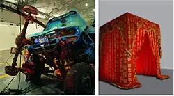 Sounding off 5.12 with Dong Feng (left) Red Curtains 5.12 (right), 2008–2009. Installation.