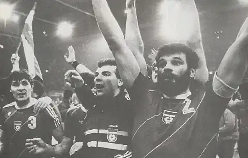 Yugoslavia played its first international small handball match in 1956 at the Tashmaidan Stadium in Belgrade against Sweden, the current world champions at the time. A draw was reached 6:6, and due to cloud cover the match was declared invalid. Yugoslav handball began to rise in the early 1970s reaching its height until 1990. At the time it was the most-winning handball team in the world, winning three medals at the Olympic Games, four at the World Championships, five at the Mediterranean Games, one at the Goodwill Games, three at the World Handball Cups and two at the Handball Super Leagues. The biggest successes are the gold medals at the 1972[1] and 1984 Olympic Games,[2] as well as the gold medal at the 1986 World Championship. The team ceased to exist after the split of Yugoslavia in June 1991. Three former Yugoslav republics have since gone on to win medals at major competitions: Croatia fifteen, Serbia four and Slovenia two. In the period from 2003 to 2020, Croatia was considered one of the best teams in international handball, winning the gold medal at the 2004 Summer Olympics and the 2003 World Championship, in addition to consistently earning major championship medals.