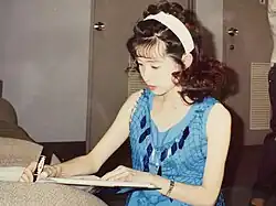 Yukiko Iwai (岩井 由紀子, Iwai Yukiko), also known by the nickname Yūyu (ゆうゆ, Yūyu), is a Japanese singer and actress born 26 May 1968 in Yokohama, Kanagawa Prefecture, Japan.[1][2] Iwai was a member of the all-girl pop group Onyanko Club (from 21 June 1985 until 31 August 1987), and she was the shortest of all the members at 150 centimetres (4 ft 11 in).[1][3][4][5] She was also half of the pop group Ushiroyubi Sasaregumi, a spin-off group of Onyanko Club.[1][3][4] She graduated from Kaetsu Women's Junior High and High School (嘉悦女子高校) (now Kaetsu Ariake Junior High and High School), but left Kaetsu Women's Junior College (嘉悦女子短大) (now Kaetsu University Junior College) before she finished.[6] She has an older sister, Akiko, who is four years older than her and is said to look just like her.[7]