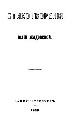 Title page of Zhadovskaya's collection Poems, published in Saint Petersburg, 1858