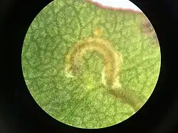 6. ^ a b c d e J. S. Dugdale (January 1971). "THE MUEHLENBECKIA LEAFMINER, ZAPYRASTA CALLIPHANA (LEPIDOPTERA: COSMOPTERYGIDAE)". New Zealand Entomologist. 5 (1): 65–69. doi:10.1080/00779962.1971.9722961. ISSN 0077-9962. Wikidata Q54576367.