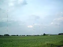 The 5 transmitting towers of Zehlendorf; the towers have since been demolished, with the last tower demolished in 2017.