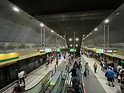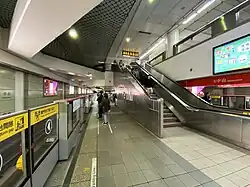 Zhongshan (Chinese: 中山, formerly transliterated as Chungshan Station until 2003) is a metro station in Taipei, Taiwan served by Taipei Metro. It is a transfer station between the Tamsui–Xinyi and Songshan–Xindian lines. It is located in the middle of the underground Zhongshan Metro Mall and near the Shin Kong Mitsukoshi Department Store. Zhongshan is a popular shopping district for young people and international tourists.