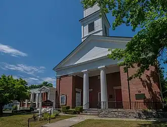 Zion Lutheran Church is a historic Lutheran church in Athens, Greene County, New York. It was built in 1853 and features a pair of wooden Doric order columns in antis and brick pilasters. The brick church is in the Greek Revival style and has a square, two stage tower.[2]