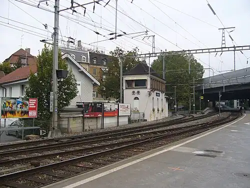 Zürich Giesshübel (German: Zürich Giesshübel) is a railway station in the west of the Swiss city of Zurich, in the city's Alt-Wiedikon quarter. It is located within fare zone 110 of the Zürcher Verkehrsverbund (ZVV).[2] The station is on the Sihltal line which is operated by the Sihltal Zürich Uetliberg Bahn (SZU). Trains on the same company's Uetliberg line pass by the station without stopping, instead serving the nearby Zürich Binz station.[3][4][5]