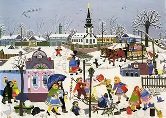 Zuzana Chalupová (Serbian: Зузана Халупова, romanized: Zuzana Halupova; 5 February 1925 – 1 August 2001) was a Serbian naïve painter of Slovak ethnicity, who was born and lived her whole life in the town of Kovačica, Serbia. Her colourful naive-style paintings recall children's works and fairy-tale illustrations. She typically painted children, so she was called "Mama Zuzana with a thousand children".[1]